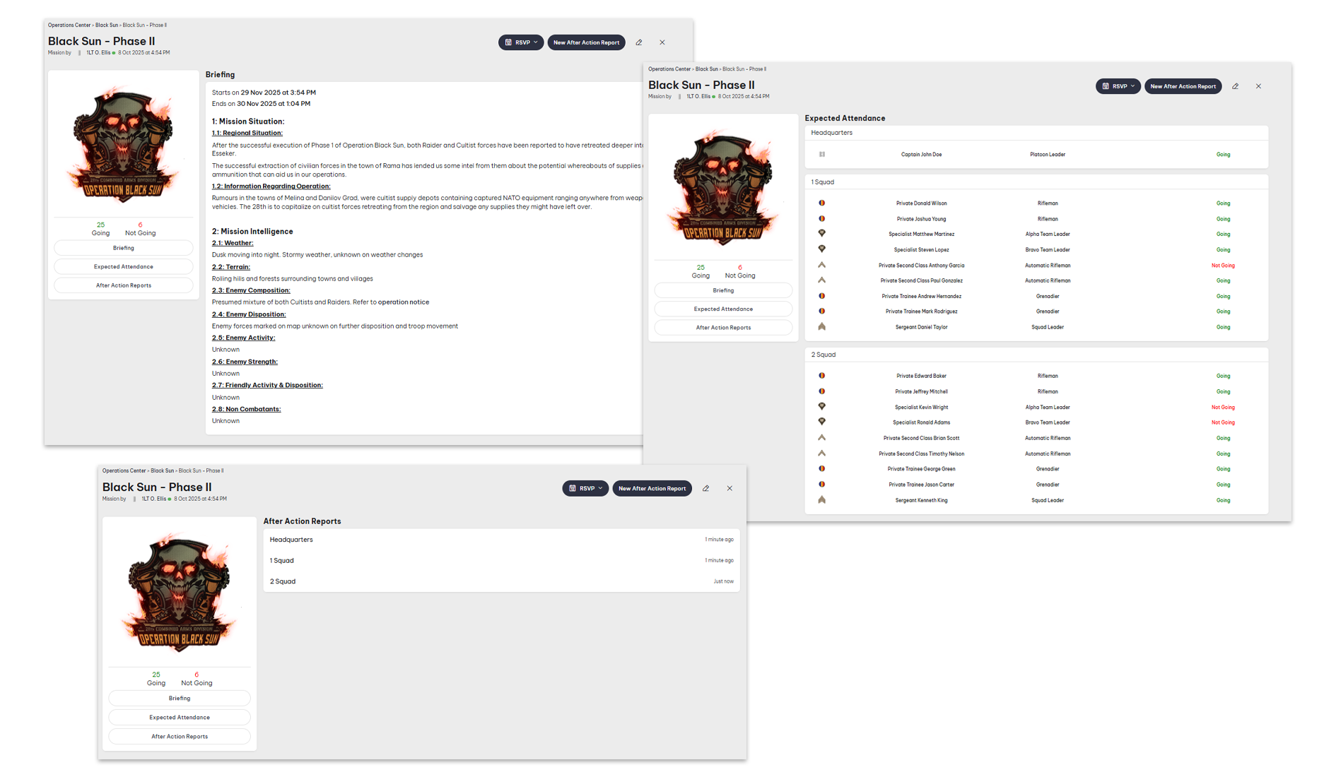 View mission briefings, expected attendance, and after action reports in a single unified interface.