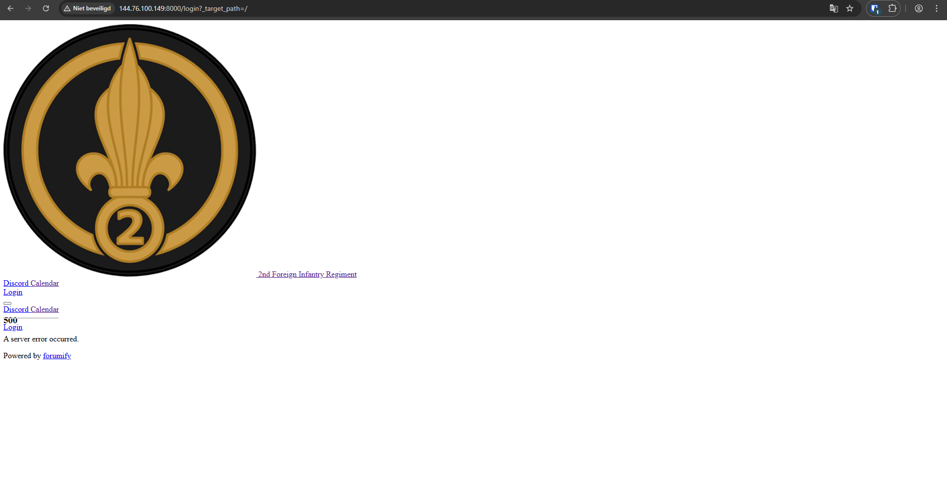 When loading up the home page, the website loads just fine. However, when trying to login, the page throws an server error 500.